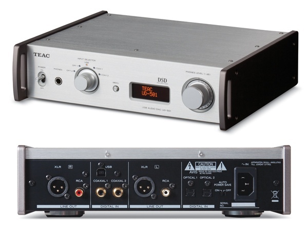 2012년 말 티악은 소형 제품인 501 레퍼런스 시리즈를 통해 컴포넌트 오디오 시장에 새로운 바람을 일으키고 있다. 최근 제품 중 스펙과 성능, 파격적인 가격과 디자인까지 모든 요소들을 새롭게 재무장하여 출시된 라인업인 만큼 관심이 가는 제품들이다. 특히 이번 DSD DAC 비교 시청 제품 중 가격은 가장 낮지만, 최근 부각되고 있는 인기 DSD DAC인 만큼 의미 있는 참여라고 할 수 있다. 먼저 디자인이 가장 이목을 끈다. 외관 디자인은 가정용과 PA용을 혼합해 놓은 듯한 이미지로, 티악이 보급형 하이파이 시장에 새로운 레퍼런스 라인업을 구축하기 위한 노력이 곳곳에서 엿보인다. 노브와 전면 핸들 등 고전적인 장비 이미지도 함께 지니고 있기 때문에 디자인이 맘에 드는 제품이다. 현재 사용되고 있는 DAC 칩은 DSD가 지원되는 버브라운의 PCM1795를 채널당 1개씩 사용하고 있으며, 디퍼런셜과 싱글 모두를 지원하고 있고, DAC 이후 아날로그 출력단에는 성능이 뛰어난 MUSES8920 OP 앰프를 사용하여 음질 퀄러티를 높이고 있다. 그리고 USB 인터페이스를 위해 TI사 DSP를 채용하고 있으며, 비동기 방식으로 인터페이스된다. 업샘플레이트를 위해 알테라 FPGA 칩으로 알고리듬을 개발·적용하여 독자적인 비동기 방식의 인터페이스를 지원하고 있다. 특히 UD-501의 경우 외부 견고한 마감과 전원부에서 메인보드까지 모두를 모노럴 구성으로 설계하고, 토로이달 트랜스포머를 채널별로 별도로 사용한 풀 듀얼 방식을 채택했다. 마치 에소테릭의 혈통임을 보여주듯 하드웨어적인 구성은 완성도가 높다.