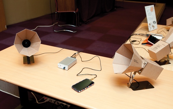 아날로그보이스 아날로그보이스는 진공관의 장점을 추출해 디지털 앰프에 접목한 디지털 튜브 오디오를 선보이고 있다. ALLDAC·DT-모노블록 파워 앰프·BS-812A 북셀프 스피커 시스템 등을 시연했고, 종이로 만든 3인치 풀레인지 혼 스피커와 USB DAC/디지털 튜브 앰프로 구성된 A4U2 PC 파이 세트와 디지털 음악을 LP 특성의 소리로 변환하는 CD2LP를 신제품으로 소개했다.