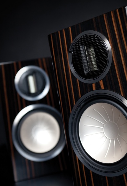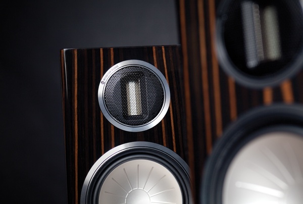 모니터 오디오의 골드 시리즈는 동사의 플래그십인 플래티넘 시리즈의 테크닉을 거의 동일하게 반영시킨 제품. 따라서 골드 GX100 스피커에도 60kHz라는 높은 주파수까지 재생한다는 C-CAM 리본 트위터는 물론이고, 6.5인치 구경의 알루미늄 마그네슘 합금 알로이 진동판을 채용한 미드·우퍼를 채용하고 있다. 유닛을 부착하는 방법도 배플에서 비스로 직접 고정하는 방식이 아닌 단일 볼트 고정 방식을 채용, 바스켓의 강성을 향상, 한층 클리어한 재생음을 기대할 수 있게 했다. 인클로저도 사각형으로 된 평범한 모습이 아닌 20mm 두께의 고밀도 MDF를 사용, 옆면을 라운드 처리하여 정재파에 근본적으로 대응하고, 타이트한 저음을 실현하기 위해 특별한 테크닉을 적용한 덕트를 사용하고 있다. 그 외에도 바이와이어링 대응의 스피커 터미널을 채용하고, 그릴 탈착 방법에도 자석식 고정 장치를 사용해 그릴을 제거했을 때에도 깔끔한 모습을 유지할 수 있다. 재생주파수의 레인지도 넓은 편으로 42Hz-60kHz까지 재생한다. 스피커만을 생산하고 소형 스피커를 즐겨 생산하는 모니터 오디오답게 그들만의 오랜 경험의 노하우가 반영되어 북셀프에서의 한계를 훌쩍 뛰어넘는 사운드를 실현하고 있다. 현대적인 사운드랄까. 솔직하고 스피드감이 특출한 사운드다. 리본 트위터 특유의 시원함으로 보컬에서 발음이 명쾌하고, 바이올린의 고음에서 시원함과 악기의 질감이 확실하다. 특히 재즈 음악에서 드럼 파트의 하이햇 심벌이나 오픈 심벌의 표현력은 특출하다고 칭찬하지 않을 수 없다. 하이햇의 크로스 시에 발생하는 공기의 움직임이 눈에 보이는 듯 리얼하고, 스킨에 스치는 브러시 워크의 사운드는 드럼을 연주하며 듣는 실제음과 흡사하다. 금속으로 된 다이어프램 덕에 맑고 깨끗하며, 탄력적인 저역은 리듬의 풋워크가 경쾌하고, 드럼의 스틱 끝에 어택하는 오픈 심벌의 샤프함이 좋다. 브라스 파트의 사운드에 금관 악기다운 광택이 있고, 직진성이 좋게 느껴진다. 오케스트라에서 무대의 넓이가 제법 넓게 그려지며, 위치감도 그럴 듯하다.