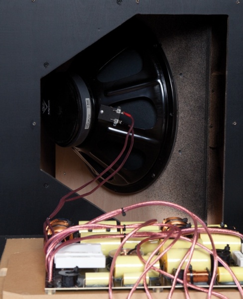 이번의 시청 제품은 지금으로부터 60여 년 전에 발표할 당시와 비교하여 거의 변함이 없는 외관을 가지고 있는 제품이다. 물론 내부의 구조도 원래의 설계를 충실히 따르고 있지만, 반세기가 넘는 세월 동안 유닛은 수차례의 변화가 있었다. 이번의 제품은 동사의 기념비적인 성격의 특주품으로 그동안 만들어져 왔던 제품 중에서 가장 평판이 좋았던 페놀수지 진동판을 사용한 컴프레션 드라이버와 트위터를 채택하고 있다. 디바이딩 네트워크도 기본 설계에는 변함이 없으나, 사용 부품 소자의 품질이나 와이어링 선재의 품질에는 개선이 있음을 알 수가 있는 것이다. 실제로 내가 이 제품을 사용할 당시에도 배선재는 바꾸어 가면서 썼던 기억이 난다. 원래의 제품이 장방형으로 된 방안의 한쪽 구석에 설치할 목적으로 설계된 것이어서 반드시 코너에 밀착하여 사용해야 제대로 균형 잡힌 소리가 나온다. 과거의 제품보다 다듬어진 부분은 바로 이 부분인데, 코너와의 기밀성을 유지하기 위해 벽이 닿는 부분은 고무 패킹을 덧대놓고 있다. 시청실의 형상이 적합한 코너를 얻기 힘든 경우에는 반드시 스피커의 뒷부분을 사용 설명서에 그려진 것처럼 뒷면의 반사판을 만들어서 시청해야 할 것이다. 이것은 반드시 지켜져야 할 사항이다. 외관의 마무리는 이전의 기름먹인 무늬목 합판에서 투명 바니시 오일 마무리로 변하였다. 중음역과 고음역을 담당하는 컴프레션 드라이버와 혼을 수납하고 있는 상부의 하우징도 오리지널의 제품처럼 분리되어 있다.