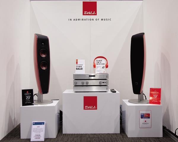이번 행사에서는 덴마크의 유명 오디오 브랜드 중 소비코 AV에서 수입하는 달리와 스칸디나의 제품이 전시되었다. 달리는 30년 역사의 자랑하는 덴마크의 오디오 브랜드로, 덴마크에서 최상의 사운드를 목표로 전문적이고 열정적인 마인드로 스피커를 제조하는 업체이며, 유포니아, 헬리콘 MK2, 멘토, 아이콘, 파존, 렉터, 젠서 등의 10여 가지의 라인업을 성공적으로 런칭한 매우 큰 규모의 스피커 제작사다. 이번 행사에는 달리의 파존 F5가 전시되었는데, 파존 F5는 2012년 EISA 어워즈 베스트 프로덕트 상을 받을 만큼 디자인과 성능 면에서 세계적으로 인정받은 스피커다. 부드러운 곡선으로 이루어진 강렬한 빨간색 인클로저가 인상적인 스피커로, 일반적인 톨보이 스피커와 많이 벗어난 디자인으로 인해 인테리어에 잘 어울리는 스피커로 주목 받고 있다. 알루미늄을 사용한 인클로저와 달리의 우드 파이버 콘 우퍼, 소프트 돔 트위터가 채용되었으며, 케이블 연결 단자도 특별히 디자인되어 다양한 방식의 케이블과 연결됨은 물론 선이 보이지 않는 깔끔한 마무리를 하고 있다.