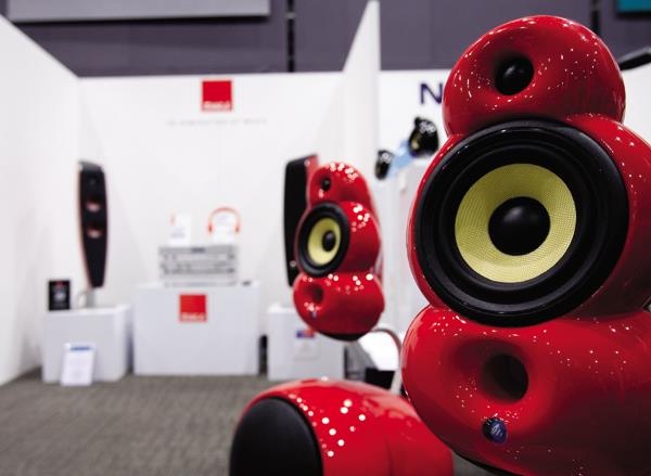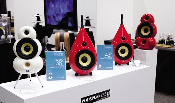 그리고 스칸디나는 시선을 뺏기지 않을 수 없는 매력적인 원색, 그리고 아기자기한 곡선 형태의 인클로저가 인상적인 브랜드로, 자신만의 디자인 아이덴티티를 통해 오디오 시장에서 좋은 반응을 얻어내고 있으며, 인테리어 소품으로도 큰 인기를 얻고 있다. 스칸디나는 작은 크기의 북셀프형 스피커들으로 라인업이 구성되어 있는데, 드롭, 메가포드, 빅포드, 미니포드, 스몰포드, 마이크로포드 등 여러 히트 모델들이 있고, 최근에는 기본 패시브 모델에 액티브 버전, 블루투스 버전 등을 추가해 발매하고 있다. 이렇게 이색적인 디자인의 스칸디나 스피커들이 의외로 탄탄한 사운드를 들려주는데, 이 디자인이 실은 B&W의 노틸러스의 이론이자 비비드 오디오와 같은 설계 이념으로, 이들 고가의 스피커와 스칸디나 스피커가 모두 로렌스 디키의 작품이라는 것은 알 만한 사람들은 다 알 것이다. 이번 행사에서는 마이크로포드 블루투스 제품이 국내에 첫 선을 보였다. 마이크로포드 블루투스는 기존 제품에서 블루투스 기능을 추가한 제품으로, 앰프가 내장되어 있어 PC나 스마트 기기와 손쉽게 연결해 음악이나 영화 감상을 할 수 있다. 이 밖에도 미니포드, 메가포드 등 기존 제품도 함께 전시되어 사람들의 눈과 귀를 즐겁게 해 주었다.