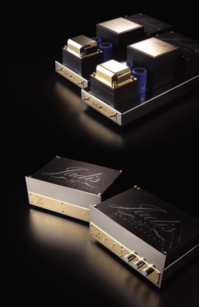 먼저 파워 앰프인 JA80 골드를 살펴보겠다. 디자인 변화는 거의 없으며, 사용된 출력관의 경우 골드라이언 복각을 사용하고 있다. 이 관의 특징은 중역대가 탄탄하고, 고역의 투명함이 좋은 진공관이기 때문에 JP80에 사용하기에 제격이다. 25주년 기념 모델 표시를 위해 전면 패널과 진공관 보호망에 25주년 각인과 명판이 부착되었고, 트랜스 케이스가 골드로 변경되었다. 음질 개선을 위해 전원 소켓은 리튬 플레이트 타입으로 변경되었고, 커플링 콘덴서 재질을 테플론 호일 콘덴서를 채용하여 디테일과 깊이 있는 사운드 표현을 제공해 주고 있다. 회로의 경우 큰 변화 없이 오리지널 회로를 반영하고 있으며, ECC82 쌍3극관을 초단에 사용하였고, ECC83을 드라이브용으로 사용하여 5극 출력관인 KT88를 완벽히 드라이빙해주고 있다. 그리고 모노블록의 각 채널에는 KT88 출력관을 4개 사용하는 파라 푸시풀 방식으로 채널당 60W 출력으로 설계되어 있으며, 더욱 개선된 트랜스포머를 통해 여유 있는 출력과 구동력이 가능하다.