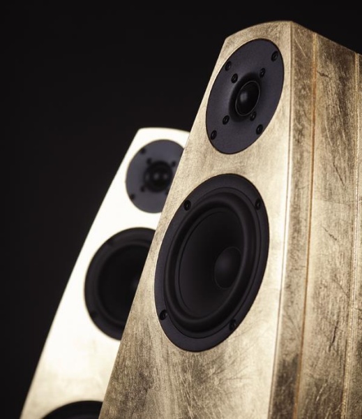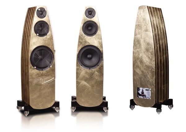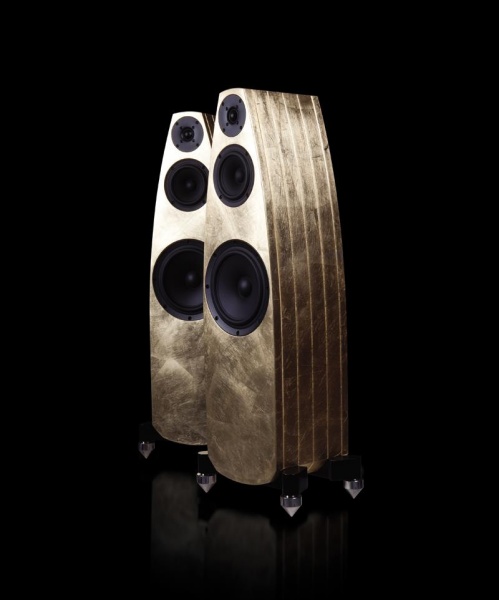 마치 악기를 연상시키는 소누스 파베르의 제품들이 하이엔드로 정착된 지 오래 됐지만, 또 하나 이 멋진 디자인과 컬러를 가진 제품의 평가가 앞으로 어떨지 상당히 흥미롭다. 무엇보다도 시선을 끄는 것은 황금색의 인클로저이다. 얼른 봐서 마치 황금색의 금속재로 보일 수도 있지만, 다가서서 보면 금박을 일일이 붙인 후 투명 래커로 마감한 것을 알 수 있다. 마치 이집트의 피라미드 아래에서 건져 올린 듯한 강렬함과 엄청난 위압감이 있다. 그렇다고 천박하게 번득이는 골드 컬러가 아니라 묵직하고 세월의 흔적이 담겨져 있는 황금의 원석 같은 컬러이며, 이런 마감이 강력하게 시선을 끌게 한다는 점에서 일단 성공한 것 같다. 그러나 이런 컬러만 있는 것도 아니고 같은 방식의 실버, 코퍼, 브론즈 색상이 있고, 악어가죽 무늬의 금·은·동 마감, 그리고 다양한 색상의 피아노 마감도 마련되어 있다.