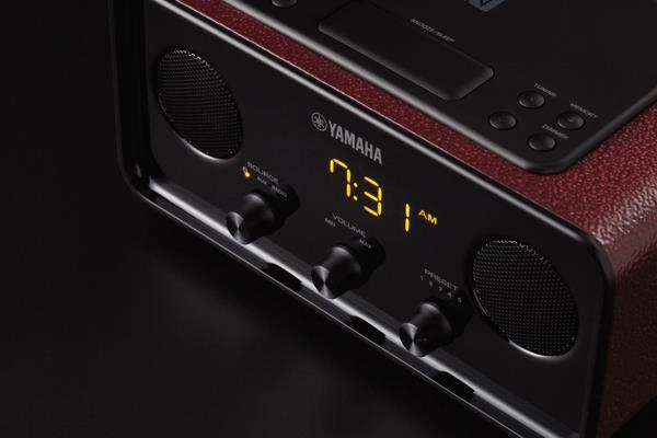 감각적인 디자인이 첫눈에 들어온다. 야마하의 최근 제품들이 디자인적으로 큰 만족감을 주고 있는데, 이 제품 역시 그런 요소들을 최적으로 보여주고 있다. 인클로저를 감싸고 있는 붉은 톤의 가죽 마감이 감각적인 포인트를 주고, 전면의 하이글로시 패널은 모던한 이미지를 잘 부각시켜 준다. 상단의 스누즈 버튼도 큼지막하게 구성되어 있고, 여러 직관적인 버튼들도 밸런스 있게 배열되어 있다.