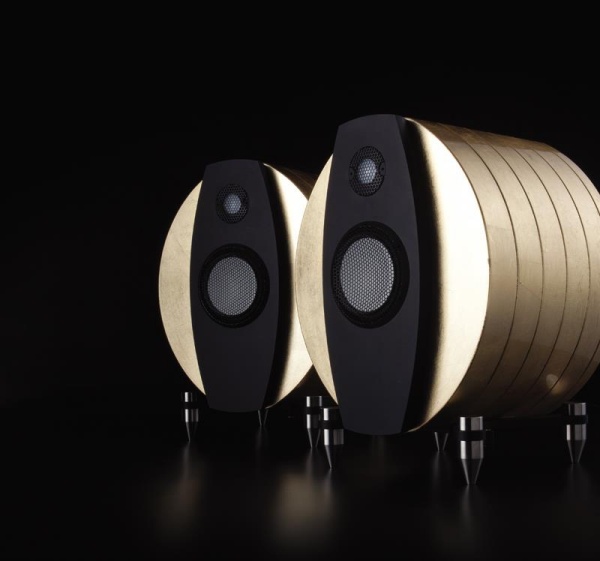 필자는 얼마 전 새로운 색소폰의 선택에 앞서 한동안 고심한 적이 있다. 사운드에서와 마찬가지로 외관상 독특한 제품을 마음에 두었기 때문이었는데, 유명 메이커의 빈티지는 음이 좋은 반면 너무 오래되어 병약한 노인을 대하는 것처럼 마음이 편하지 않아서였고, 가까운 나라에서 생산되는 외관상 번뜻한 악기들은 음이 마음에 들지 않아서였다. 그러던 중 지인으로부터 연락이 왔다. 이탈리아 수제품을 추천하고 싶다는 것이었다. 그때까지 이탈리아의 색소폰을 한 번도 만나 본 적이 없어 선뜻 내키지 않았는데, 그때 갑자기 과르네리 오마주의 생각이 머리를 스쳐 지나갔다. 소장하고 싶었던 스피커를 소장할 수 없어서였는지 이루지 못한 첫사랑의 연인처럼 머릿속에 아른거리며 남아 있었기 때문이었을 것이다. 하여 찾아가 실물을 보고 연주도 해보았는데 마음에 들었다. 금도금이었지만 무광으로 여타 유명 제품처럼 번쩍번쩍거리며 잘난 척하지도 않았고, 수제품으로 정성을 다한 모습에다 과르네리 오마주에서 느꼈던 이탈리아 장인 정신으로 만들어졌을 것이라는 기대감이 작용했던 것 같다. 한데 오늘 만난 이 스피커 역시 인클로저 컬러가 새로 구입한 색소폰의 컬러와 기막힐 정도로 똑같다. 무광택 나무 위의 금색과 금속 위의 금도금이란 점에서만 다르지 않다면 말이다. 아마도 금에 대한 컬러의 감성에서 두 메이커의 감성이 맞아떨어진 것이겠지만, 어쨌든 처음 보는 스피커이지만 이 제품에 대한 친근감이 생겨 낯설지 않게 느껴진다.