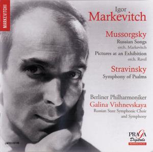 러시아의 천재 음악가이자 지휘자인 이고르 마르케비치가 지휘한 무소르그스키와 스트라빈스키 연주 음반이다. 마르케비치는 작곡가이면서 그만의 뛰어난 곡 해석이 돋보이는 지휘자인데, 이 음반에선 라벨이 오케스트라 버전으로 편곡한 무소르그스키의 전람회의 그림이 압권이다. 전람회의 그림을 마르케비치의 지휘로 들어본 것은 이 음반이 처음이지만, 라벨의 관현악 버전 특유의 응집력과 회화적인 표현들이 마르케비치에 의해 잘 통제되고 해석되었다. 베를린 필과의 녹음이라 그런지 음질도 뛰어난데, SACD에서의 공간 잔향과 입체감이 잘 드러나는 녹음이며, 리마스터링도 뛰어난 음원이다. 그리고 6곡의 러시아의 노래는 구소련의 유명한 소프라노 갈리나 비쉬네프스카야의 목소리로 들을 수 있는데, 그녀가 가장 인기 있던 전성기 시절이었던 1962년 6월 모스크바 녹음으로, 러시아 국립 합창단과 러시아 국립 교향악단이 연주하고 있다. 스트라빈스키 시편 교향곡은 작곡가의 종교적인 찬가를 담고 있는 곡으로, 구약성경의 시편을 교향곡으로 옮겨놓은 곡인데, 마르케비치가 지휘하는 러시아 국립 교향악단의 연주는 전람회의 그림과는 사뭇 다른 진지함이 묻어나는 연주다.