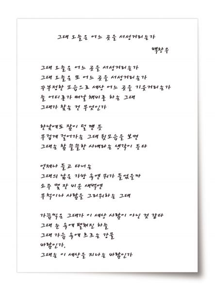 4시간에 걸쳐 메밀국수집과 커피전문점, 녹음실 등으로 장소는 바뀌었지만 창밖의 빗줄기처럼 대화는 한결같이 진지했고, 음악 얘기만 나오면 특유의 직설화법으로 본인만의 철학을 가감 없이 역설하는 모습에서 거장의 풍모는 숨길 수가 없었다. 지면 관계상 모든 대화를 옮길 수 없음은 못내 아쉬울 뿐이다. 그의 머리엔 어느덧 서릿발이 그득하고 현실의 벽 앞에서 번뇌하는 50대 후반의 모습을 숨길 수는 없지만, 아직도 해맑은 그의 감성과 예술적 열정은 포크 부활의 시간을 앞당기리라 예상해 볼 수 있었다. 끝으로 내가 좋아하는 그의 글로서 영원한 청년 가객 백창우를 기억해 보고자 한다.