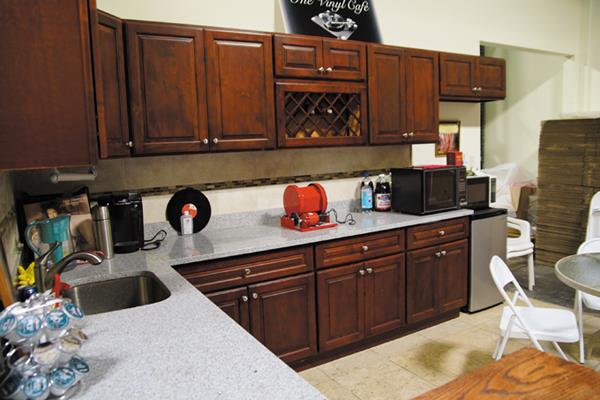 웨어하우스 중간에 있는 키친. 이름하여 바이널 카페(Vinyl Cafe). 직원들이 점심을 먹거나 혹은 간단한 요깃거리를 필요로 할 때 사용된다. 실제 취재 당일 오후에 던킨에서 가져온 커피와 도넛을 갖고 간단한 파티를 벌이기도 했다.