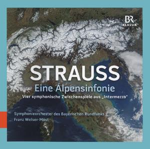 두 번째 음반은 R. 슈트라우스의 대표적인 작품인 알프스 교향곡과 교향적 간주곡 ‘인터메조’인데, 오스트리아 출신의 지휘자 프란츠 벨저-뫼스트가 지휘를 맡고 있다. 프란츠 벨저-뫼스트는 2013년 빈 신년 음악회의 지휘를 맡아 이름을 기억하고 있는데, 잘 알려진 것처럼 카라얀에게 지휘를 사사하였던 지휘자다. 현재 클리블랜드 오케스트라의 상임 지휘자로 활동하고 있는데, 이번 두 곡에서는 바이에른 방송 교향악단을 객원 지휘하고 있다. 특히 R. 슈트라우스의 곡 중 가장 인기 있는 대작 알프스 교향곡은 알프스 산을 교향곡으로 표현한 곡으로, 산을 오르는 동안에 느껴지는 대자연의 풍경을 마치 그림을 보듯 세밀하고 광활하게 잘 표현한 곡이다. 지휘자 프란츠 벨저-뫼스트는 이런 풍경을 잘 그려 내고 있으며, 작은 표현 하나에도 심혈을 기울였다. 기대 이상으로 스케일도 크며, 웅장함도 맛볼 수 있으며, 세련되고 안정적인 연주도 돋보인다. 특히 올해는 R. 슈트라우스 탄생 150주년이 되는 해인만큼 알프스 교향곡이 주목을 받을 것 같은데, 이 음반은 알프스 교향곡의 매력을 맘껏 경험할 수 있는 좋은 음반이란 생각이 든다. 녹음은 알프스 교향곡은 2010년 4월, 인터메조는 2013년 12월에 있었던 실황을 수록하고 있다.
