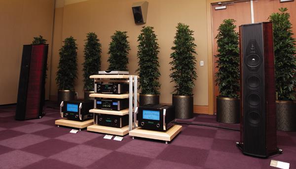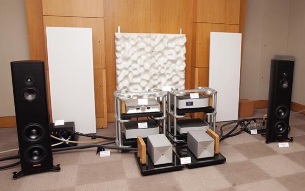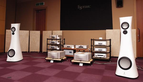 극동음향의 에소테릭 부스에서는 에소테릭의 플래그십 제품인 그란디오소 풀 시스템을 소개했는데, 그란디오소 P1 SACD 트랜스포트와 그란디오소 D1 D/A 컨버터, 그란디오소 M1 모노블록 파워 앰프, G-01 마스터 클록의 구성에 골드문트 미메시스 22H 프리앰프, 에스텔론 X 다이아몬드 스피커를 매칭해서 시연했다. 그리고 신형 SACD 플레이어인 K-01X을 선보였고, K-05 SACD 플레이어와 I-03 인티앰프도 소개되었다.