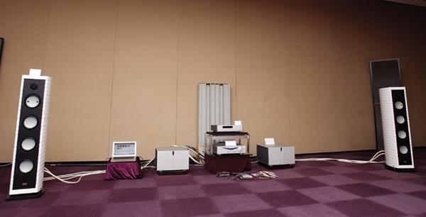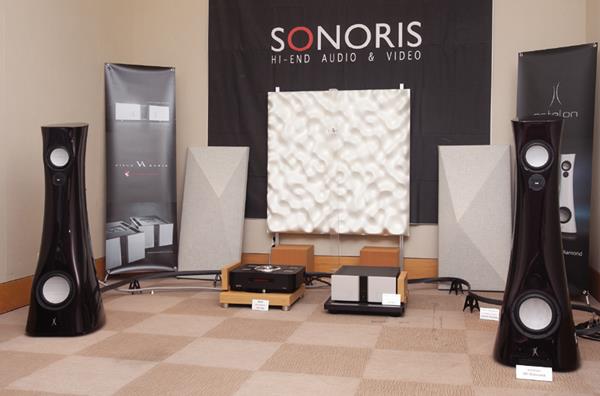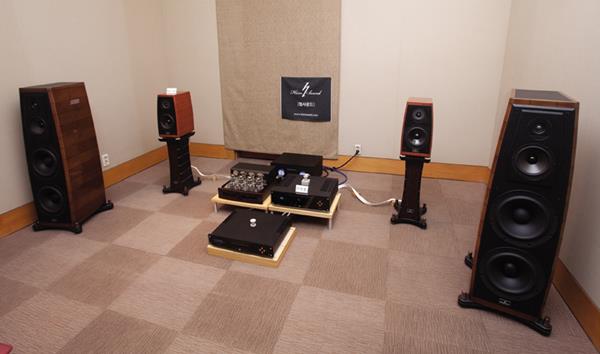 소노리스의 또 다른 부스에서는 범상치 않은 디자인의 에스텔론의 XB-다이아몬드 스피커가 중심에 있었는데, 에이온의 CD-3sx CD 플레이어와 비투스 오디오의 RI-100 인티앰프, Klee 어쿠스티카의 그랜드 일루전 스피커 케이블을 매칭해서 시연했다. 단출한 구성의 시스템이지만 이 시스템이 재생하는 사운드는 매우 인상적이었다. 이 부스는 소노리스답게 화려한 룸 튜닝 액세서리로 장식되어 있었는데, 다른 부스보다 소리가 잡혀 있다는 느낌을 받았다.