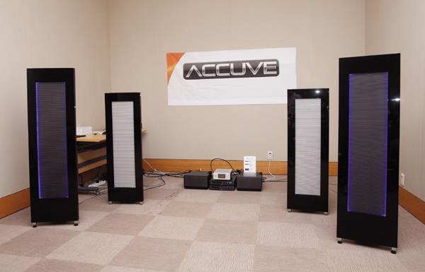 국내에서 한지로 정전형 스피커를 제작하는 아큐브는 이번 쇼에서 자사의 아큐브 5와 아큐브 7 한지 풀레인지 정전형 스피커 두 가지를 가지고 시연했다. 쿼드의 엘리트 CDS CD 플레이어, 엘리트 PRE 프리앰프, 엘리트 QMP 모노블록 파워 앰프와 오렌더의 뮤직 서버 X100S로 아큐브 스피커를 구동했고, 정전형 스피커를 제조하는 쿼드의 앰프가 아큐브 스피커를 잘 구동하는 듯했다. 그리고 독특한 매력의 사운드와 개성 있는 청취 자세로 주목을 받았다.