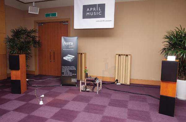 에이프릴 뮤직에서는 오라 노트 V2를 주축으로 메인 시스템을 구성했는데, 10월 출시 예정인 오라 2웨이 북셀프 스피커와 3웨이 플로어 스탠딩 스피커, 자작 스피커로 매칭해 시연했다. 그리고 노트북, 스텔로 DA100 MK2 D/A 컨버터, HP100 MK2 프리앰프, S100 MK2 파워 앰프, 솔루스 엔트레 북셀프 스피커로 꾸민 서브 시스템과 노트북, 스텔로 HP100 MK2, 젠하이저 헤드폰으로 꾸민 헤드폰 시스템으로도 시연했다.