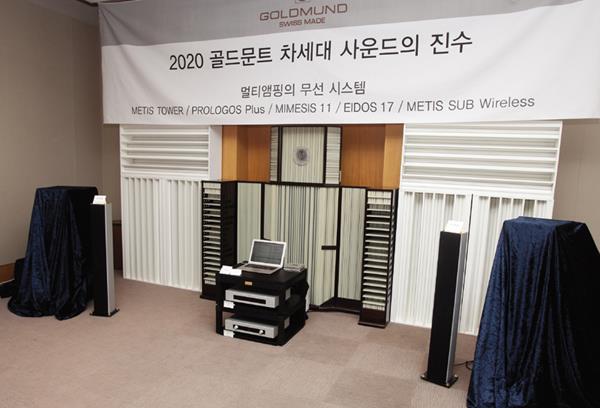 골드문트로 꾸며진 오디오 갤러리 부스에서는 앰프가 내장된 액티브 스피커에 디지털 크로스오버, 무선 기술까지 적용된 선이 필요 없는 스피커 시스템을 소개했다. 프로로고스 플러스 무선 액티브 스피커, 미메시스 11 와이어리스 허브, 에이도스 17 블루레이 플레이어, 메티스 서브 와이어레스 유·무선 서브 우퍼 구성과 메티스 타워 무선 액티브 스피커, 미메시스 11, 에이도스 17, 메티스 서브 와이어레스 구성으로 이루어진 시스템을 시연했다.