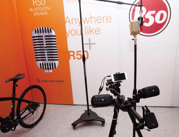블루투스 스피커 시장에서 디자인과 음질로 승부를 건 신생 브랜드 지미 스튜디오 디자인이 이번 행사에 참여했다. 그들의 블루투스 스피커인 R50은 과감하게 마이크의 모양을 그대로 본떠서 만들어 낸 파격의 디자인을 하고 있는데, 카메라 삼각대 나사 조인트를 적용해 다양한 스탠드와 결합할 수 있게 되어 있다. 이번 행사에서는 자전거, 마이크 스탠드, 카메라 삼각대 등 다양한 스탠드와 결합해 소개되었다. 무광 검정, 레드 그릴 버전도 소개했다.
