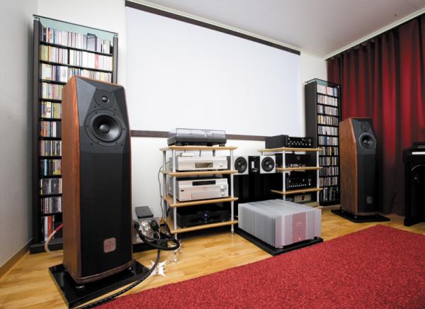 이제 쌓인 기기들을 정리하고 하나로 통일하자고 크게 마음을 다잡아 ATC SCM50 등의 기기들을 거의 모두 정리했다. 스피커를 결정하기 위해서 여기저기 귀동냥을 다니며 다인오디오 C4, B&W 802D, 다인오디오 컨시퀀스 등 여러 스피커를 들어보았는데 모두 좋긴 하나 딱히 이거다 싶은 느낌이 오는 놈이 없어 결국 평소 많은 관심을 가지고 있었던 소누스 파베르의 과르네리 오마주를 들이게 되었다. 이때는 앰프를 그리폰의 디아블로, CD 플레이어는 어큐페이즈의 DP-78로 조합을 했다. 소문대로 바이올린 소리는 당대 최고인 것 같았다. 의외인 것은 바이올린뿐만이 아니라 내 귀에는 기타 소리, 보컬 등도 소문과 다르게 매우 좋게 들려 상당히 올라운드적으로 느껴졌다. 스피커 용적의 한계로 저역의 양감이 부족하게 들리는 것이 단점이었는데 케이블 매칭으로 어느 정도 보완이 되었고, 후에 앰프를 진공관 인티앰프인 레벤 CS600으로 교체하니 질감이 더욱 살아나고 저역의 양감이 대폭 증가하는 것이 느껴졌다. 어큐페이즈 DP-78과 과르네리 오마주의 음색 매칭은 너무나 환상적이었다. 소리가 그렇게 예쁠 수가 없었다. 그런데 어큐페이즈 DP-78은 소리가 좀 가늘고 저역의 양감이 적은 성향이라 과르네리 오마주와 어큐페이즈 DP-78의 매칭은 베스트는 아닌 것 같다. 그 뒤로 평소에 그 소리가 무척 궁금했던 오디오 피직의 비르고 3을 거친 후 다시 한 번 중대형기의 영입을 시도하였고, 몇 번의 시행착오를 거친 후 마침내 현재의 시스템을 조합하게 되었다.