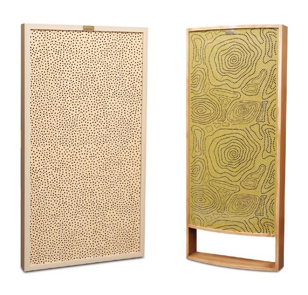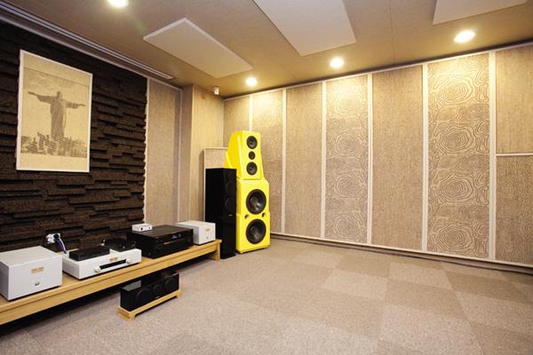 시공하는 음향 판넬 제품인 에코사운드 아트월 제품으로 갤럭시 시리즈 1-10과 갤럭시 M 시리즈 21-24, 갤럭시 아트 시리즈 101-103, 갤럭시 마이크로 시리즈 1-2가 있고, 그 외에 투명 마이크로 PC(폴리카보네이트) 타공판과 라인 타입, 서클 타입 흡음 판넬 제품이 있다. 그중 PC 타공 음향판이 인상적인데, 유리 앞쪽에 설치하는 제품으로, 유리의 투명도를 유지하면서도 소리의 반사를 제어해 소음을 줄인다. 주로 스튜디오나 드럼 부스에 설치하는 제품인데, 인테리어 효과에도 좋아 오디오 룸의 유리창에 설치하면 좋을 것 같다는 생각.