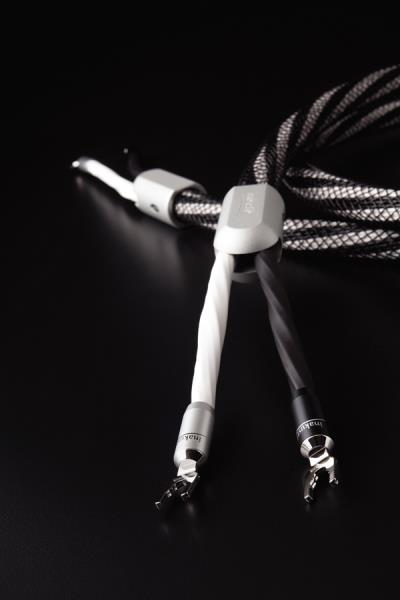 필자가 시청한 LS-2404 스피커 케이블에는 단자로 스페이드가 부착되어 있으며, ‘24’라는 숫자는 총 24개의 가는 연선들이 가운데가 비어 있는 폴리에틸렌 코어를 중심으로 동심원을 그리며 가장자리로 배열하고 있는 것을 의미한다. 그런데 각 연선들 역시 슈퍼 스피드 웨이브가이드라고 칭하는 원기둥 모양의 폴리에틸렌 절연체를 중심으로 각 심선들이 동심원을 그리며 가장자리로 배열되어 있다. 보기 드문 독특한 구조이다. LS-2404 스피커 케이블은 아마 케이블의 구조 면에서 음질을 개선하는 데 중점을 둔 것으로 보인다. 무산소동으로 만든 심선들은 래커로 코팅해 놓고 있고, 연선들은 모두 DUO-PE Ⅱ라는 2개의 층으로 구성된 폴리에틸렌 절연체로 싸여져 있으며, PE-네트워크 재킷이라는 그물 모양의 폴리에틸렌 재킷으로 마감되어 있다. 외향으로 볼 때 매우 독특하며 단단하게 보인다. 인아쿠스틱 케이블의 상위 라인 케이블은 모두 독일에서 수작업으로 제작된다고 한다.