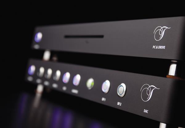 이번 리뷰는 가격과 성능에서 이슈가 되었던 DAC와 전용으로 제공하는 PC & 드라이브 시스템이다. 제품의 외관은 50mm 통 알루미늄을 CNC 가공하여 견고하게 처리되어 있으며, 전면의 버튼들과 후면 단자들은 마치 전기 장치를 보는 듯한 기계적인 느낌을 제공하고 있다. 별도의 디스플레이부가 없이 단순히 스위치의 불빛에만 의존하고 있는 것이 특이하다. 제품을 지지하는 인슐레이터는 볼 삽입 방식을 채택, 진동에도 철저히 대응하고 있다.