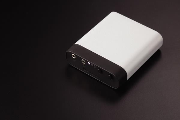상당히 작은 크기의 이 헤드폰 앰프를 살펴보면 처음에는 당황할 수밖에 없다. 느낌은 그저 스마트폰용 휴대용 외장 배터리. 그 정도로 작고 아담하다. 단자는 앞뒤로 각각 3.5mm 스테레오 입·출력이 하나씩 있고, 뒤에 충전을 위한 마이크로 USB 단자가 있다. 버튼은 앞쪽에 +와 -로 2개뿐이다. 상태를 표시하는 것은 3개의 LED뿐이다.