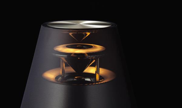 이전에 소개한 LSX-700이 플로어 스탠드 조명의 성격이라면, 이번에 소개할 LSX-170과 LSX-70은 침실 스탠드 조명의 성격을 띠고 있고, 크기가 이전 모델에 비해 상당히 축소되었다. 그리고 LSX-700이 모서리 또는 뒷벽의 반사를 이용해 소리를 내는 제품인데 반해 이 2가지 제품은 360도 방향으로 소리를 방사하는 무지향 스피커의 구조로 되어 있다. 블루투스 스피커라는 제품의 특성상 직접 음보다는 간접 음으로 음악을 듣는 경우가 많은데, 기획자나 디자이너가 제품이 사용되는 환경을 제대로 읽고 있다는 생각이 들었고 여러모로 감탄했다. 공간 어느 곳에 두어도 균일한 음질로 음악을 들을 수 있다는 무지향 스피커의 장점이 블루투스 스피커에서 빛을 발할 것이라는 생각은 추호도 하지 못했는데, 허를 찔렸다고 할 정도로 인상적이다. 테이퍼 콘을 사용해 360도 방향으로 소리가 확산되도록 최적화한 원통형 디자인이 만들어 내는 무지향의 음은 다른 블루투스 스피커가 만드는 음과는 다른 독특한 매력을 제공해 주고 있었다.