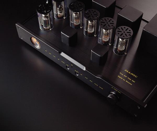 올닉 오디오 D-5000 DHT 핵심 기술 중 하나가 직열 3극관 방식. 아마 진공관식 DAC 제품 중에 전단부터 출력단까지 모두 직열 3극관 방식으로 제작한 것은 본 기가 최초라 하겠다. 파워 서플라이도 진공관으로 설계한 것이 돋보인다. 7233과 5654 두 개의 관이 쓰였는데, 이렇게 사용한 이유는 정전압 때문이다. 한편 디지털부를 보면, ESS의 최상급 칩인 ES9018K-2M을 썼다. 이 자체로는 2채널 스테레오를 다 커버한다. 그러나 모노로 변환해서 쓸 경우, 32비트/384kHz까지 업샘플링된다. 당연히 본기엔 채널당 하나씩, 말하자면 모노로 사용하고 있다. 본 기의 최대 장점은 PCM과 DSD 신호를 다 커버한다는 것이고, 어떤 형태의 고음질 파일도 모두 384kHz까지 업샘플링한다는 데에 있다. 따라서 다양한 디지털 입력단의 제공이 눈에 띄고, 특히 USB 입력은 독자적으로 설계한 인터페이스가 개재되어 매우 뛰어난 퍼포먼스를 보여준다. 외부 클록을 사용할 수 있게 배려한 점도 장점 중 하나. 세계에서 주목하는 제품인 만큼, 꼭 한 번 들어보길 권하고 싶은데, 국내에서는 오디오 멘토스를 통해 청음할 수 있다.