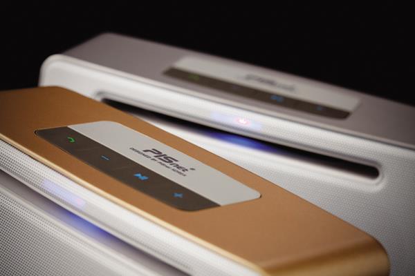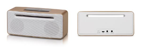 색상은 두 가지로서 샴페인 골드와 새틴 실버인데, 개인적으로는 샴페인 골드가 더 눈에 띄는 느낌이다. 디자인은 트렌드에 맞는 요소요소들을 잘 채용했다는 인상. 윗면에 컨트롤 부를 두고, 전면에 2개의 풀레인지 유닛을 배치한 일반적인 형상이다. 특징적으로 전·후면을 아우르는 긴 구멍을 내놓고 있는데, 단순히 디자인적 요소인 줄 알았는데, 자세히 들여다보니 저음을 위한 일종의 통로였던 것. 덕분에 효율적으로 저음을 컨트롤하는데, 제품 크기로는 짐작할 수 없는 다이내믹한 저역을 유감없이 선사하기도 했다. 사실 처음 이 제품을 들어보고 제법 무겁다는 인상이었는데, 이것 역시 제작자의 센스가 돋보인 것으로, 진동에 대한 방지와 단단한 저역을 위한 나름의 튜닝인 것이다. 최근의 블루투스 스피커들이 단순히 비용 절감과 디자인 편의성 때문에, 플라스틱 인클로저를 채용하고, 또 휴대성을 강조하여 너무 가볍게 설계되는 경우가 많은데, 이 역시 사운드에서는 큰 악영향을 미치는 것이 당연하다. 인클로저는 펄 코팅 재질의 메탈 소재를 사용했고, 바닥에는 진동 흡수와 미끄럼 방지를 위한 패드를 장착시켜 놓은 센스까지 보여준다.