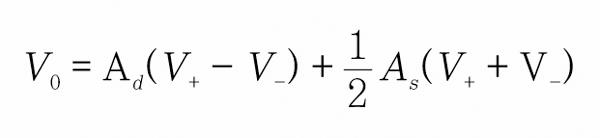 여기서 AS는 공통 모드 이득인데, 보통 차등 이득보다 훨씬 작다. CMRR의 단위는 데시벨(dB)이고, 다음과 같이 정의한다.