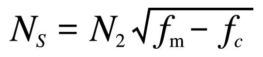 쇼트 잡음 NS는 원래 Schottky 잡음의 준말로, 주파수와 상관관계 없이 발생하는 잡음이다. 코너 주파수 fc의 잡음 값 N2를 기준으로 해서 영역 상한 주파수 fm까지의 것이며,