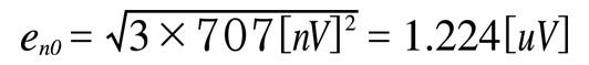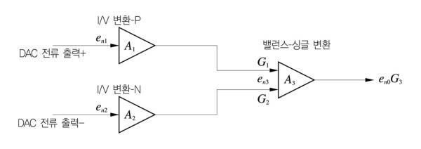 여기서 I/V 변환 회로와 밸런스-싱글 출력 변환 회로의 잡음 이득을 1이라고 취급해도 무방하므로 간략히 하면 위의 식은