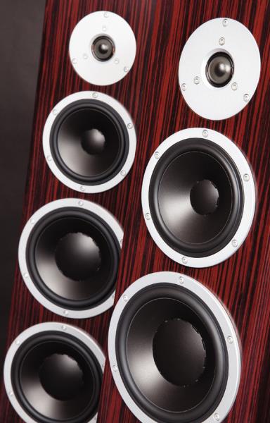 전반적인 구성을 보면, 3웨이 4스피커 방식으로, 특히 더블 우퍼 채용이 눈에 띈다. 이 우퍼의 구경은 18cm로, 이 하나만 놓고 보면 작다고 느끼겠지만, 두 개가 동시에 작동할 때의 파괴력은 생각보다 엄청나다. 덕분에 밑으로 34Hz까지 내려가며, 고역은 23kHz까지 커버한다. 스피커의 무게는 23kg이며, 높이가 1079mm. 이 정도면 가정에서 메인으로 사용해도 전혀 부족함이 없는 퀄러티와 내용을 갖고 있으며, 가격도 타당하다고 하겠다. 특히 감도가 4Ω에 88dB인데, 실제 운용해보면 진공관 인티앰프 정도로도 충분히 구동이 된다. 말 그대로 미드 파이 정도의 애호가들이 다인오디오라는 메이커에 대한 신뢰를 갖고 사용할 수 있는 아주 귀중한 모델인 것이다.
