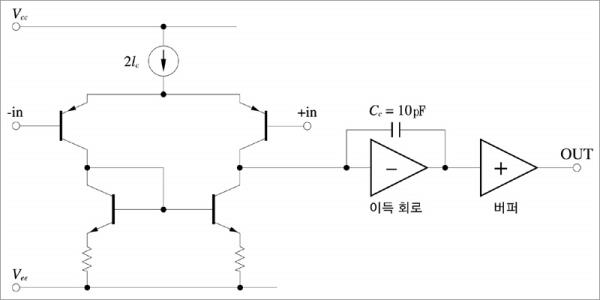 <그림 3>은 LME49860의 간략 등가 회로이다. 대체적인 구성은 일반적인 OP AMP와 거의 같다. 하지만 내셔널 세미컨덕터 사는 ‘High Integrated PNP’라는 고성능 프로세스를 통하여 저잡음, 광대역 특성을 양립시켰는데, 그 이유 중의 하나가 초단 차동 증폭 회로에 있어 매우 높은 이득을 갖도록 한 것이다. 이득을 높일 경우 콜렉터 전류가 증가하면 바이어스 전류가 커지고, 오픈 루프 이득이 칩 내의 열적 안정도에 따라 많이 의존되는 문제가 있는데, 이를 고성능 프로세스를 통해 해결했다는 점이 돋보인다.