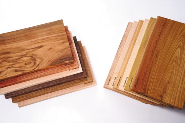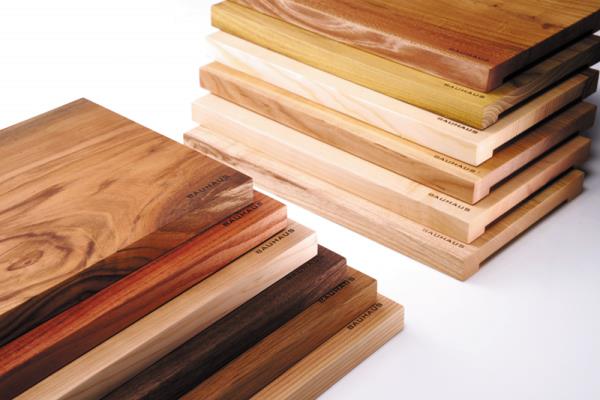 나무 도마라고 하면 집성목으로 만들어지는 경우가 대부분인데 바우하우스의 도마는 100% 통 원목으로 만들어진다. 그래서 바우하우스의 도마는 비슷한 무늬는 있지만 똑같은 무늬는 하나도 없는, 세상에 하나밖에 없는 도마다. 원목을 켜서 오랜 시간 건조하는데, 건조의 노하우에 따라서도 품질이 달라지고 많은 비용이 소요된다고 한다. 일반 집성목 도마는 식재료에서 발생되는 물기와 냄새가 고스란히 도마에 스며들어 오염에 취약하지만, 바우하우스의 원목 도마는 단단한 통 원목을 오랜 기간 건조하고 연마한 뒤에 인체에 전혀 무해한 자연 유래 성분의 천연 오일로 여러 번 코팅해서 항균 효과가 있다.