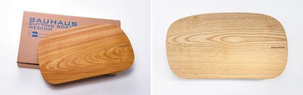 바우하우스 원목 도마는 모양에 따라 모던 라인과 크래프트 라인 두 가지 형태로 나뉜다. 이름에서 짐작되듯 모던 라인은 심플하고 깔끔한 형태의 직사각형 도마이고, 크래프트 라인은 심미적 디자인이 가미된 라운드형의 도마다. 사이즈에 따라 L, M, S 세 가지로 나뉜다. L 사이즈는 일반적인 가정용으로 사용하기 적합하고, M 사이즈는 이유식용, S 사이즈는 여행용이나 캠핑용 취사도구로 사용하기에 좋다. 산벚나무, 느티나무, 물푸레나무, 소나무, 단풍나무, 은행나무, 편백나무, 스프러스나무 등 원목의 종류에 따라 무늬결과 색상이 다르니 취향에 맞게 선택할 수 있다. 도마에 새겨진 로고도 멋스러움을 더한다. 제품의 패키지도 고급스러워서 기프트 박스의 느낌을 준다. 선물용으로도 좋을 듯하다.