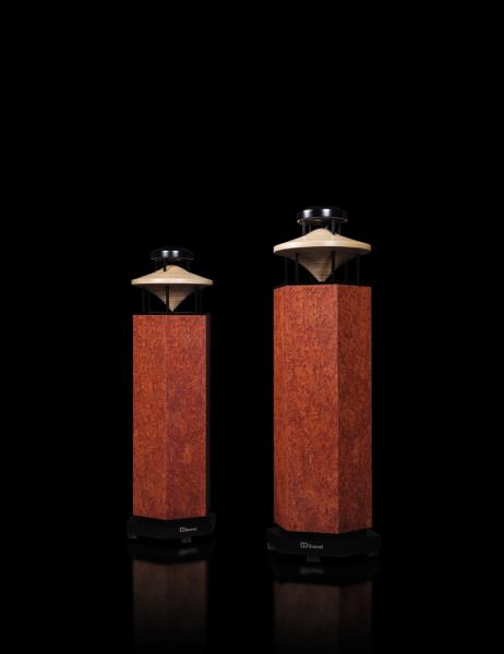이 제작사의 제품들은 마치 피노키오를 만든 목공소에 두면 잘 맞을 것 같은 느낌이 드는, 귀엽고 앙증맞으며 일종의 천재성이 보이는 독특한 제품들을 소개하고 있는데, 마커스 듀에벨이란 독일 엔지니어가 만들어 낸 이 스피커들은 무지향성이라는 특징이 있다. 굳이 양편 벽 쪽으로 평행선을 이루어 3m쯤 간격을 벌리고, 뒷벽과의 사이는 얼마가 좋다는 그런 고정 관념을 허물어 버린 채 그냥 적당한 곳에 둬도 된다는 것이 무지향성 스피커의 특징이다. 물론 기왕에도 무지향성의 스피커가 없었던 것은 아니다. 그러나 기존의 무지향 스피커들이 고급의 하이엔드 지향이었던데 비해 듀에벨은 좀더 간편한 제작 과정을 통해 파격적인 가격대의 보급기도 제작을 한다.