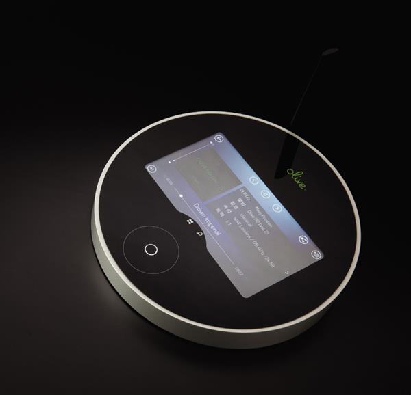 이 제품은 본격적인 소형 올인원 콘셉트이다. 알루미늄으로 제작된 원형 케이스에는 터치스크린 방식의 7인치 LCD를 채택, 직관적인 조작성을 고려하였고, 전면이 기울어지는 타입으로 세련된 감각과 심플함을 돋보이게 한다. 전면 중앙에는 터치 방식의 조그 다이얼을 큼지막하게 장착시켰고, 이를 통해 볼륨 조정과 소스 선택 및 나열 방법을 컨트롤할 수 있다. 불필요한 버튼을 최대한 줄여놓은 인상이며, 애플의 제품처럼 직관적이고 간편하게 구동할 수 있는 환경을 만들어주고 있다.