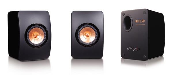LS50 스피커는 KEF의 플래그십 라인에 속한다. 플래그십 라인에는 최상위 제품인 뮤온이 있고, 그 아래로 블레이드와 LS50이 있는데, 뮤온과 블레이드는 대형 플로어스탠딩형 스피커이지만, LS50은 2웨이 베이스 리플렉스 북셀프형 스피커다. 25mm 알루미늄 돔 트위터와 130mm 마그네슘·알루미늄 합금 콘 미드·우퍼가 동축형으로 조합되어 있다. 주파수 대역은 79Hz-28kHz로 광대역이다. 크기는 200×302×278(mm, WHD), 무게는 7.2kg이다.