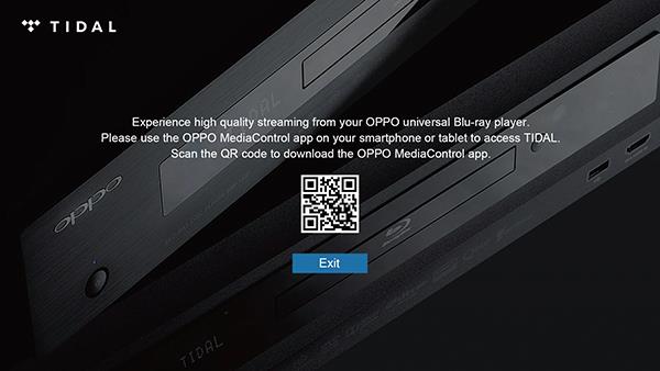 1.오포 BDP-105D 초기화면에서 ‘TIDAL’을 선택하면 ‘QR 코드’가 나타나고 스마트폰으로 찍으면 바로 전용 어플 설치로 진입된다. 또는 스마트폰에서 바로 오포를 검색하여 ‘Oppo Media Control’을 설치해도 된다.