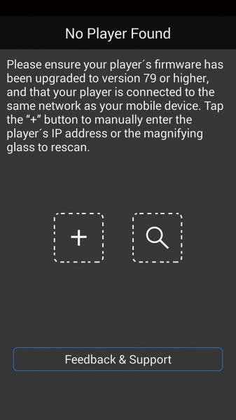 1. 스마트폰에서 ‘Oppo Media Control’ 어플을 실행한 뒤 자동으로 오포 BDP-105D가 검색이 되지 않는다면 IP를 직접 입력하여 세팅해 두면 된다.