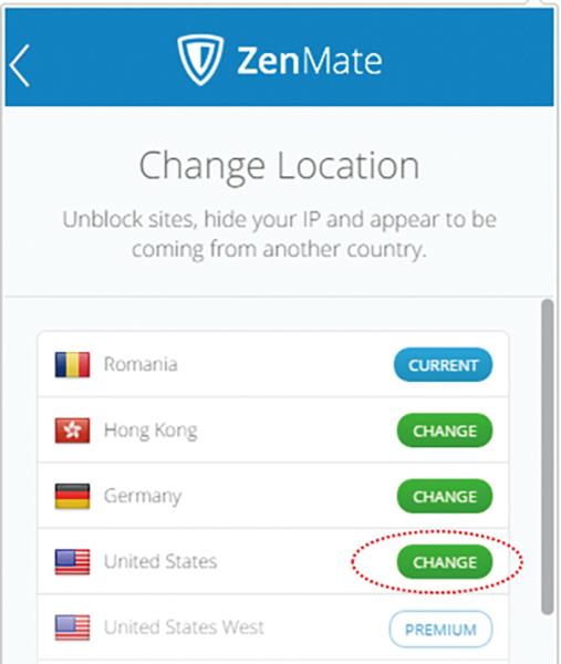 5. ‘Change Location’에서 국가를 ‘United States’로 변경 선택