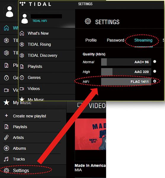 3. Setting 확인 : ‘Streaming’ 선택 후 반드시 Hi-Fi용으로 설정 필요함
