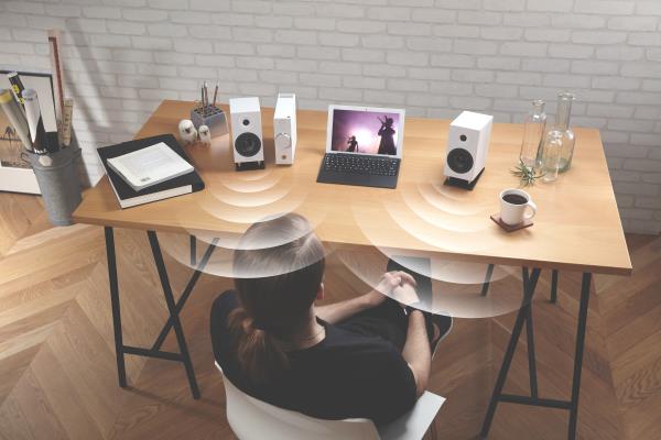 스피커는 일반적인 2웨이 2스피커로 구성되어 있으며, 6.2cm의 고강성 카본 섬유 콘 우퍼와 1.4cm의 소프트 돔 트위터가 조합되어 있다. 전체적으로 조금 작은 듯한 사이즈의 유닛들이지만, 실제 사운드를 들어보면 확실히 크기 이상의 무대가 정확한 위상으로 펼쳐지므로 크게 걱정할 것은 없다. 오히려 책상 위 가까운 거리에서 듣기에는 이 정도 사이즈가 가장 적당하지 않나 생각될 정도. 실제로 일반적인 하이파이 스피커를 책상 위에 올려놓고 시청했을 때 정확한 포커싱이 잡히지 않고, 과도한 저역에 진동이 고스란히 전달된 기억도 제법 있다.