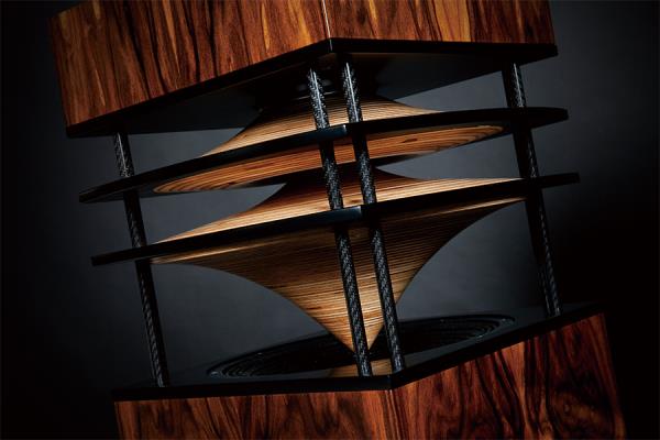 여기서 잠깐 트위터를 보면, 13.1cm 구경으로, 나이트라이트-티타늄(Nitride-Titanium) 계열의 복합 물질을 진동판으로 채용했다. 이와 커플링되는 미드·베이스는 31.5cm 구경인데, DDR이라는 것으로 변조 및 고조파 왜곡을 저감시키고 있다. 여기서 DDR은 ‘Double Demodulating Rings’의 약자인데, 상당히 복잡한 소재가 채용되었다고 짐작이 된다.
