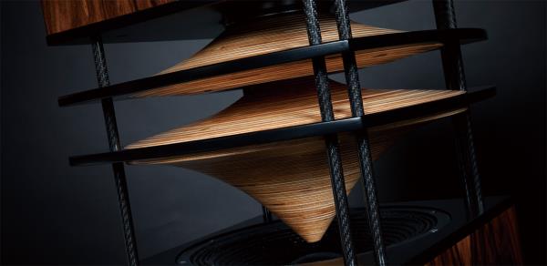 시리우스라 명명된 본 기는, 듀에벨의 플래그십에 속하는 모델이다. 본 기의 외관을 보면 통상의 스피커와는 판이한 형상에 자칫 놀랄 수도 있겠다. 상부에 두 개의 혼을 마주보는 형상으로 떡하니 설치해놨기 때문이다. 아마 이런 콘셉트의 제품은 지금까지 한 번도 본 적이 없어서, 나 역시 처음에는 깜짝 놀랐다. 자세히 보면, 상부 박스에 트위터가 담겨져 있어서, 그 음이 혼을 타고 나와, 이와 마주보는 혼과 부딪혀서 전 방향으로 확산되는 구조임을 알 수 있다.