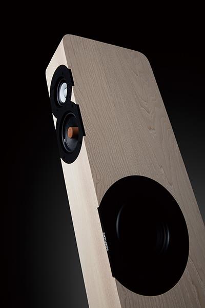 인클로저도 독특하기 짝이 없다. MDF가 아니라 집성목을 사용해 제작하고 있는데, 공개되어 있는 내부를 보면 CNC 밀링 머신을 사용해 통 원목을 파내는 방식으로 목재를 가공해 제작한 것을 알 수 있다. 내부에 마치 급격한 소용돌이 형태의 미로를 만들어 놨는데, 이 미로의 형태는 과거 여러 스피커에서 응용했던 저역 확장을 위해 포트 구간을 길게 늘어뜨려 놓는 백 로딩 혼 같은 효과를 노린 것인데, 우퍼가 위치하는 곳에서 위에서 아래로 길게 포트가 내려와 있다. 그리고 중·고역과 중·저역용 유닛은 밀폐를 시키고 있다.