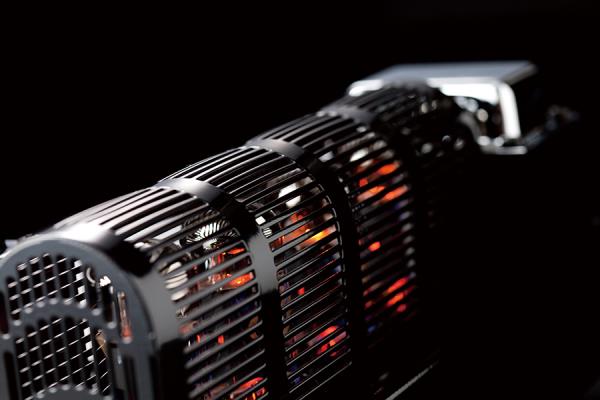 거울 같은(어떤 면에서는 거울보다 더 선명하다) 특유의 크롬 도금 패널과 금속편 덩어리를 그대로 금도금한 두 개의 노브는 여전히 강렬하고 주장이 강한 EAR의 트레이드마크이다. 패널 우측 하단의 오렌지색 파워 푸시 버튼에 등이 들어오고, 킹스 크로스 역 정원의 불빛이 들어오면, 다른 제품에서 볼 수 없는 독특한 요새가 둥실 떠오른다. 파라비치니 스타일의 장관이다.