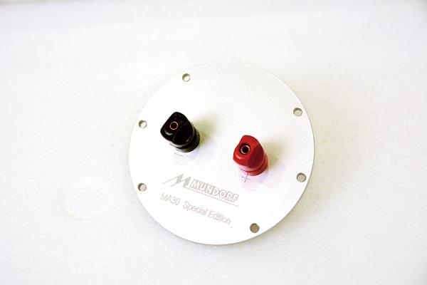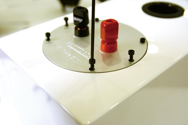 새로운 알루미늄 바인딩포스트 패널에 + 측은 적색, - 측은 흑색 바인딩포스트를 홈에 맞추어 삽입 후 너트와 와셔를 순서대로 체결한다. 이때 바인딩포스트는 플라스틱으로 제작된 제품이기 때문에 너트 고정 시 너무 강한 힘으로 고정하지 않고, 꽉 조여진 느낌이 들 정도까지만 고정한다.