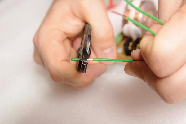 ① 네트워크 단자부에 케이블을 연결하기 전 케이블 피복을 스트리퍼 공구를 이용하여 1cm 정도 벗겨낸다.