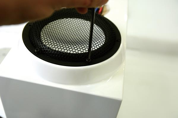 ③ 케이블 연결 후 트위터를 전용 나사로 체결한다. 이때 주의할 점은 트위터는 강한 자력이 있기 때문에, 볼트가 트위터에 붙지 않도록 조심스런 작업이 필요하다. 한 번에 볼트 전체를 체결하지 않고, 대칭으로 조금씩 조여 가며 고정한다.